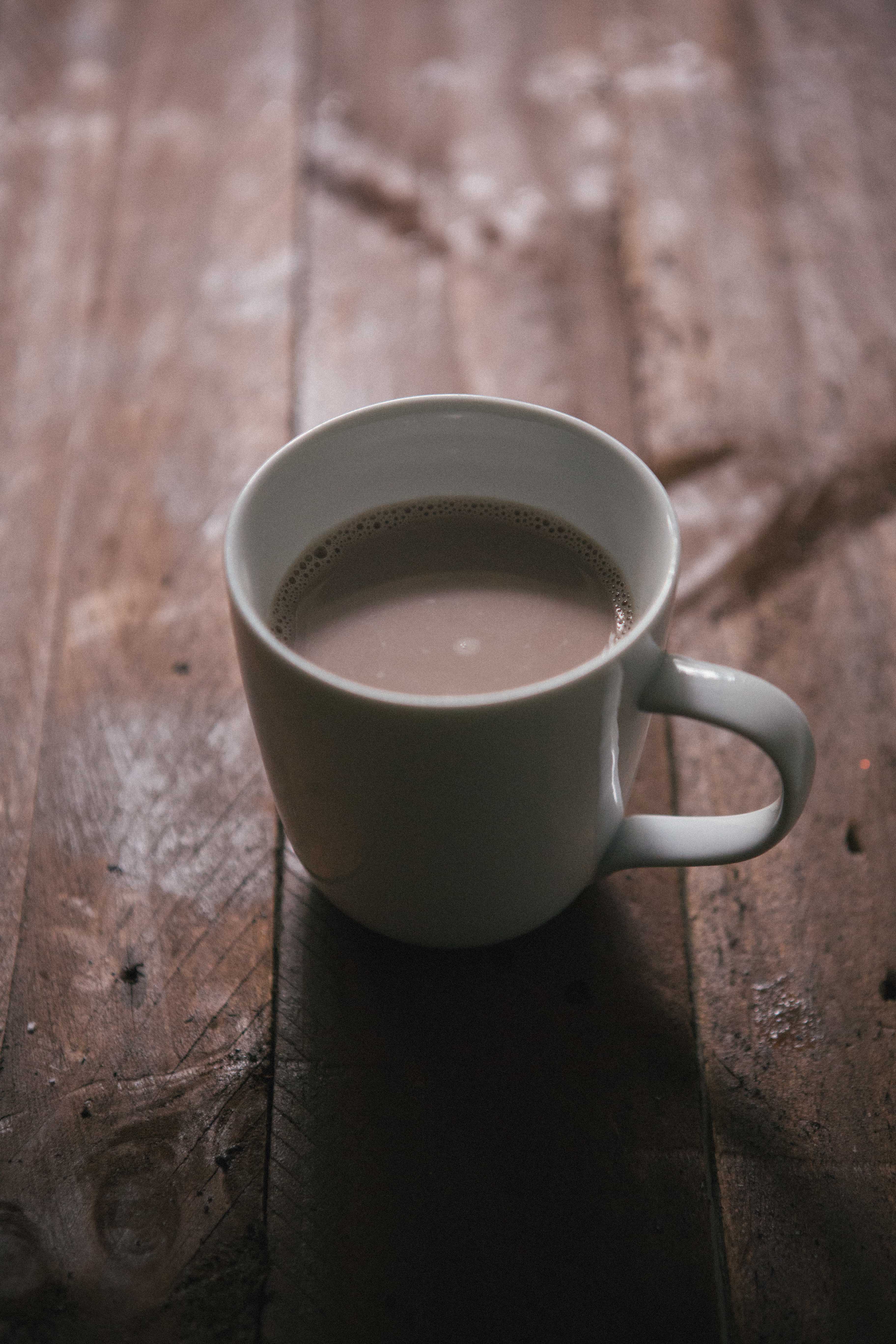 The warm chocolatey milk will start to thicken as the chocolate melts. (If you are a bonafide chocoholic, add an extra 3 oz (75 grams) of chocolate.)