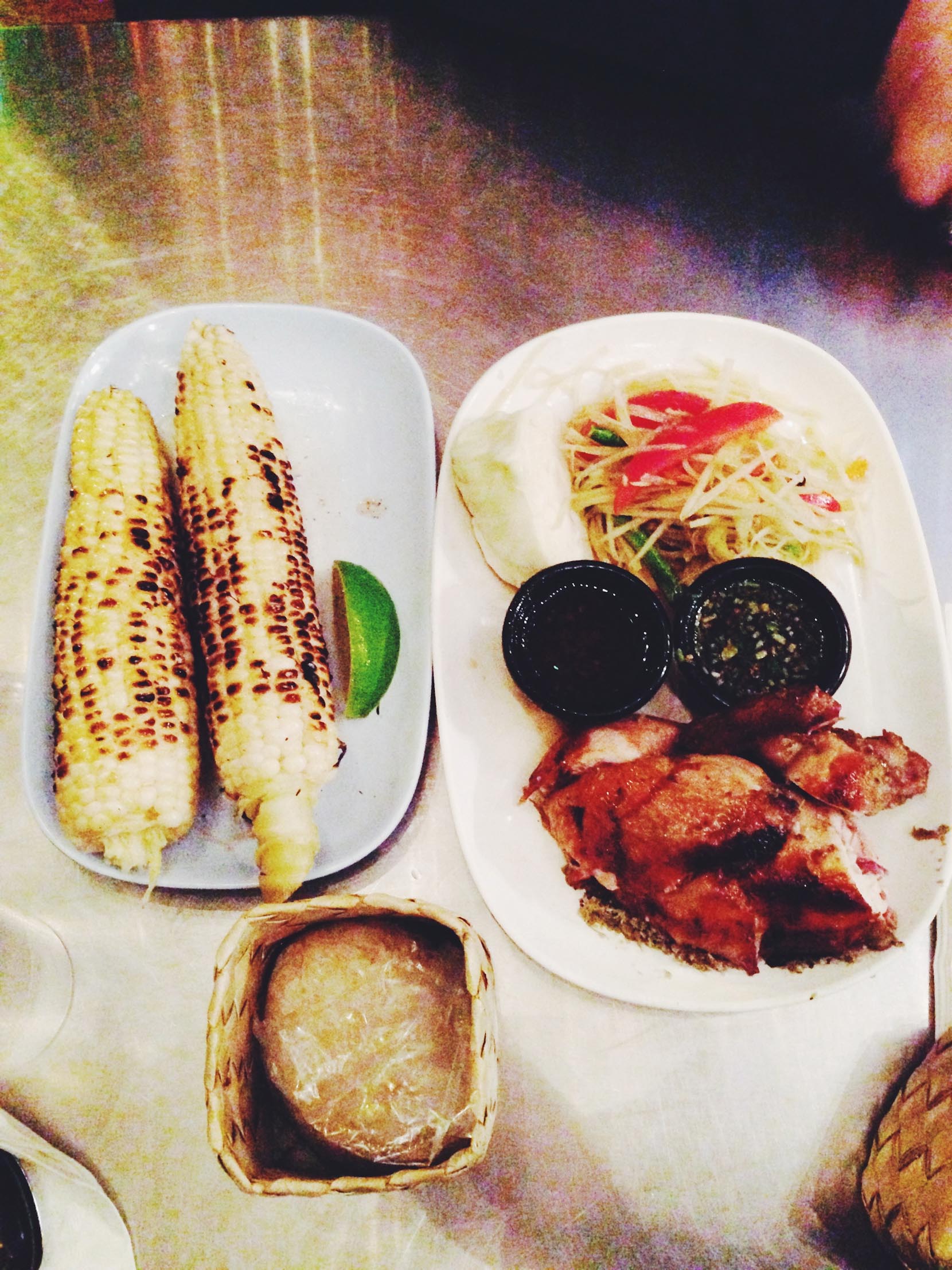 Pok Pok’s Special (roasted game hen + green papaya salad + sticky rice & dipping sauces). Expect to wait 1-2 hours to sit down at this popular Thai restaurant, but know that it is most definitely worth it! We loved everything about the laid back atmosphere and unique menu. Ordering the Special is a good way to try a few things on the menu, and I am still dreaming about those dipping sauces. Other items worth trying: the fish sauce wings, the whole fried fish, and grilled corn. And I can’t forget the house roasted peanuts with chilies and lime leaf – which you can order from the bar across the street while you wait for a table!