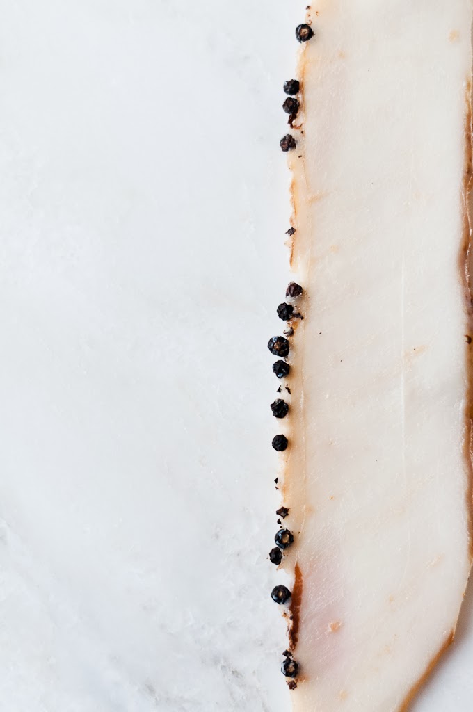 A slice (about 50g) of cured lardo