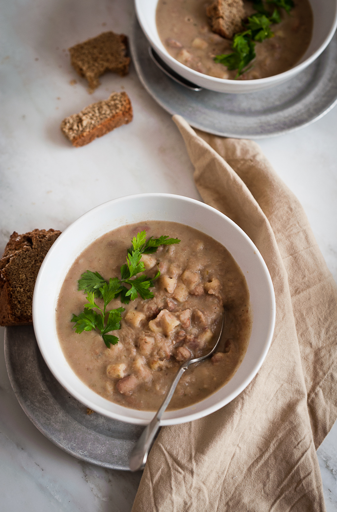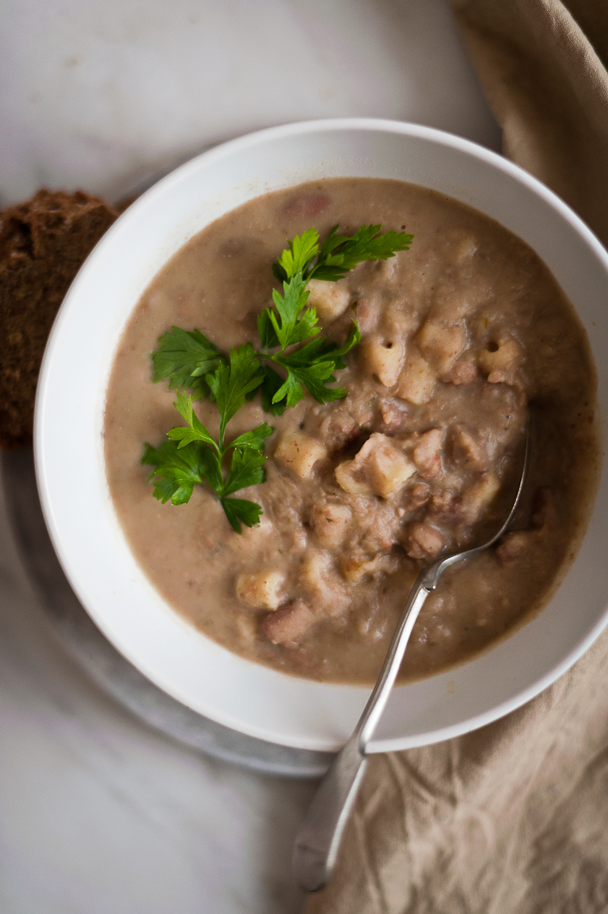 Fast forward to the present, pasta e fagioli is far from being a daily recurrence in my life, yet it always brings a warming, nostalgic flavour to my table. I love making it with dry beans, flavouring it with the same lardo and parsley mix I was taught to use – even if it sounds very old school, I fear it won’t taste the same without it. However, it can easily become vegetarian/vegan by using only olive oil. It is perfect for the cold months, as it is comforting and nourishing without being too heavy. Best of all, it can be made ahead and in big batches and then just reheated – perfect to fit our busy lives and the holiday rush. I must say, it does taste better the second day.