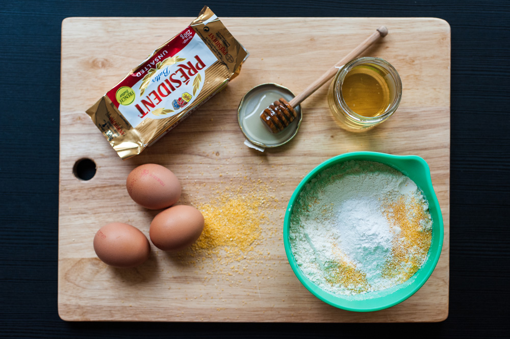 Add the honey and the buttermilk, bit by bit, to the melted butter while whisking it. Once all the buttermilk has been added, the mixture should be cool enough to add the eggs. Whisk until it’s all thoroughly combined.